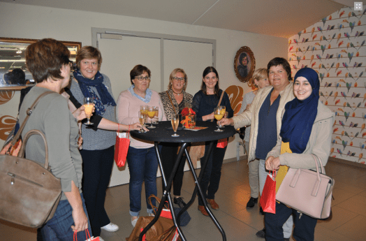 Op de afsluitende receptie krijgen de aanwezigen een rood zakje met mijn boekje erin. Mooi om vanaf de zijlijn zo naar de kijken.