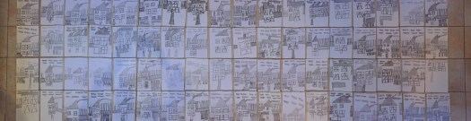 Als je de tekeningen naast elkaar legt, krijg je een straat, een dorp, een hele leefwereld door Christine geschapen. Een bron aan mogelijkheden, een schat aan verhalen ligt zomaar uitgespreid. De tekeningen van Christine zijn een uitnodiging om te verdwalen, want ook al herhaalt hetzelfde thema zich honderden keren, toch wil je elke tekening apart bekijken.